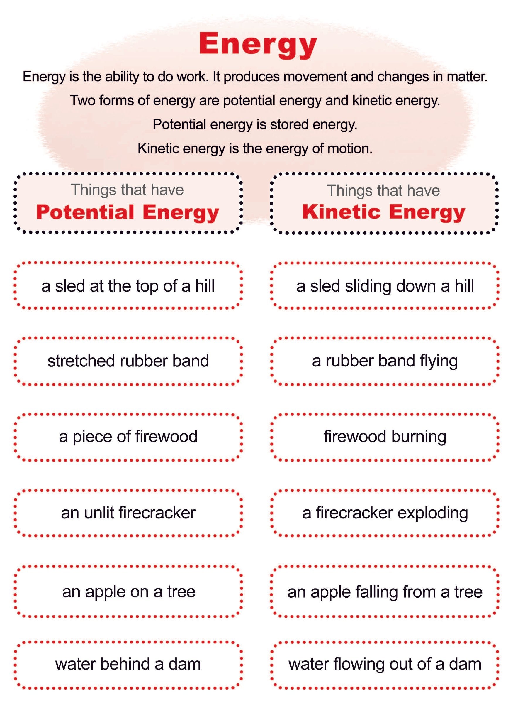 These 6 language exercises help children solidify their knowledge of energy and matter, potential and kinetic energy, states of matter, changes in states of matter, energy we use, and heat transfer. For each of the six exercises, you will print two cards, one to cut apart from matching and one to leave whole for self-checking. For ages 6-9. Originally produced by In-Print for Children, it is now available only as a file for printing.